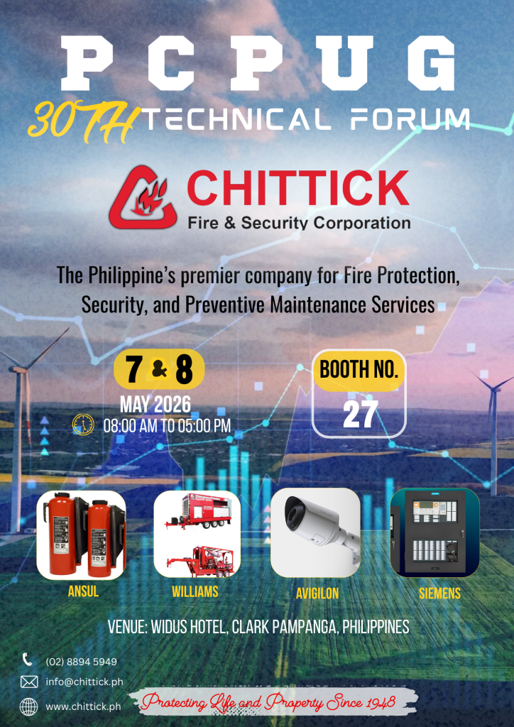 We, the Chittick Fire & Security Corporation, a 78-year-old company with strong and trusted references in the power generation industry, are delighted to invite you to the PCPUG 30th Technical Forum, happening on May 7–8, 2026, at Widus Hotel, Clark Pampanga.
